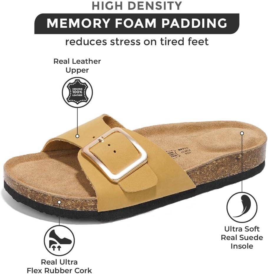 imageProject Cloud Genuine Leather Sandals Women Dressy Summer Beach Essentials  Flip Flops ampamp Slides with Memory Foam Insole Womens Sandals Comfortable FootwearGreybigger Buckle
