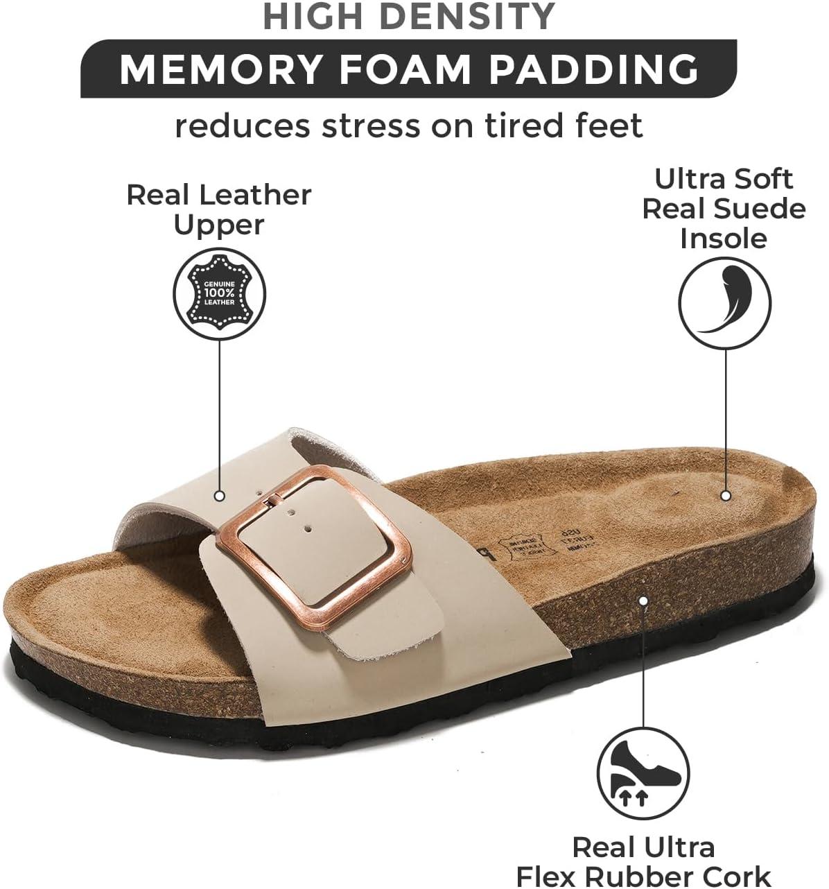 imageProject Cloud Genuine Leather Sandals Women Dressy Summer Beach Essentials  Flip Flops ampamp Slides with Memory Foam Insole Womens Sandals Comfortable FootwearCognacbigger Buckle