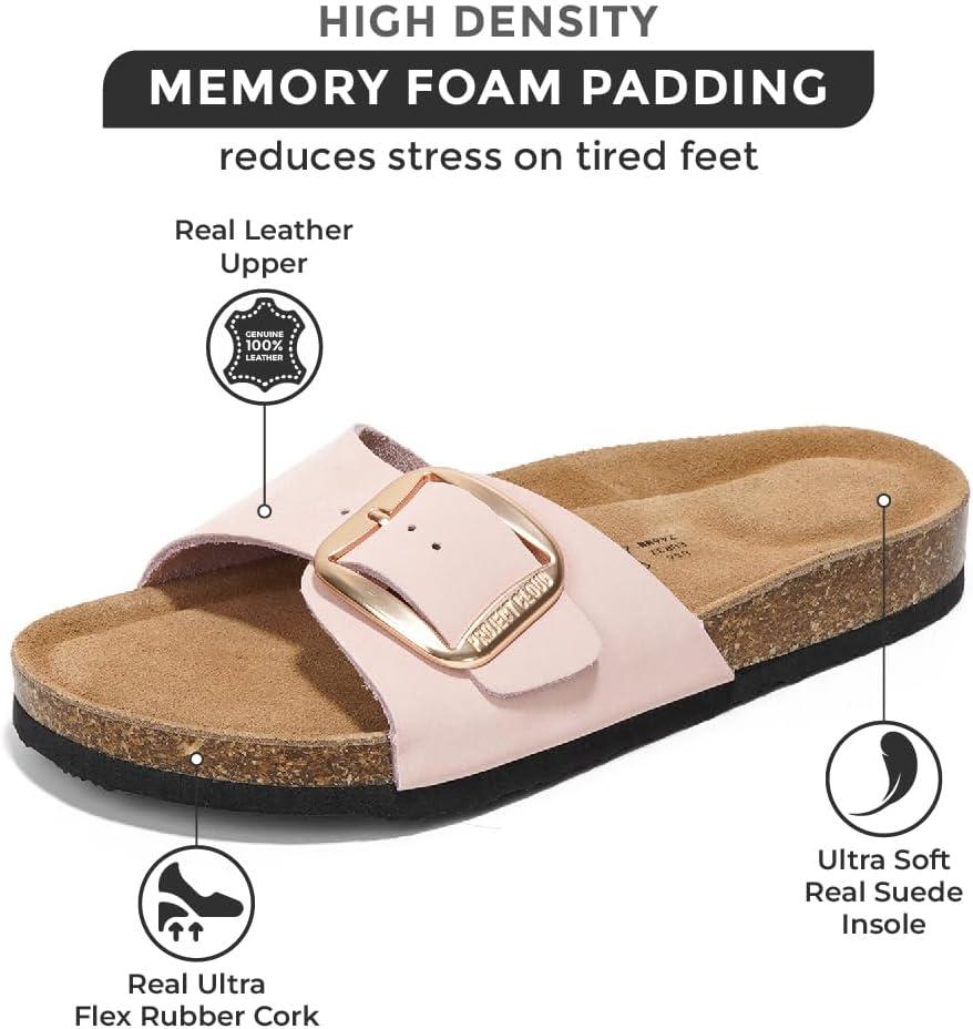 Project Cloud Genuine Leather Sandals Women Dressy Summer Beach Essentials - Flip Flops & Slides with Memory Foam Insole Womens Sandals Comfortable Footwear(Pink)