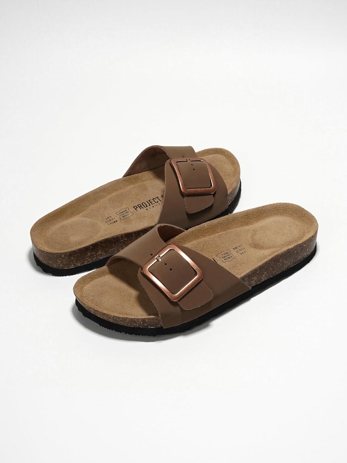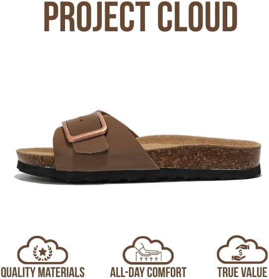 Project Cloud Genuine Leather Sandals Women Dressy Summer Beach Essentials - Flip Flops & Slides with Memory Foam Insole Womens Sandals Comfortable Footwear(Tan)