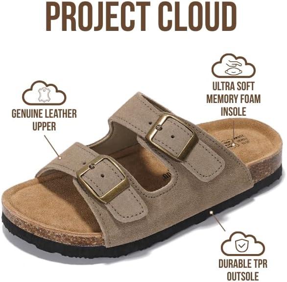 Project Cloud Genuine Leather Slides For Kids – Natural Cork Footbed Summer Sandals Beach Slide Sandals for Girls & Boys – Non-Slip Boys & Girls Sandals (Little Venita)(Chestnut Suede)