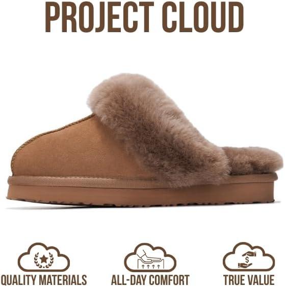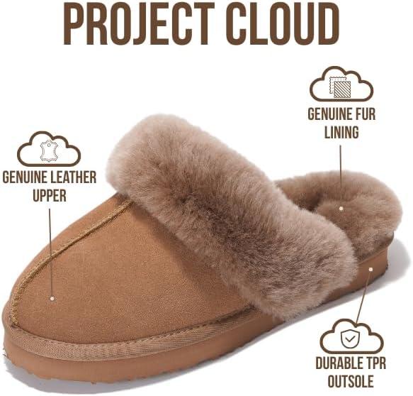 imageProject Cloud Genuine Leather Slippers for Women Footwear with Genuine Fur Lining Womens Clogs ampamp Mule  NonSlip IndoorOutdoor Scuff Womens Slippers with Memory Foam Insole HenkaCamel Suede