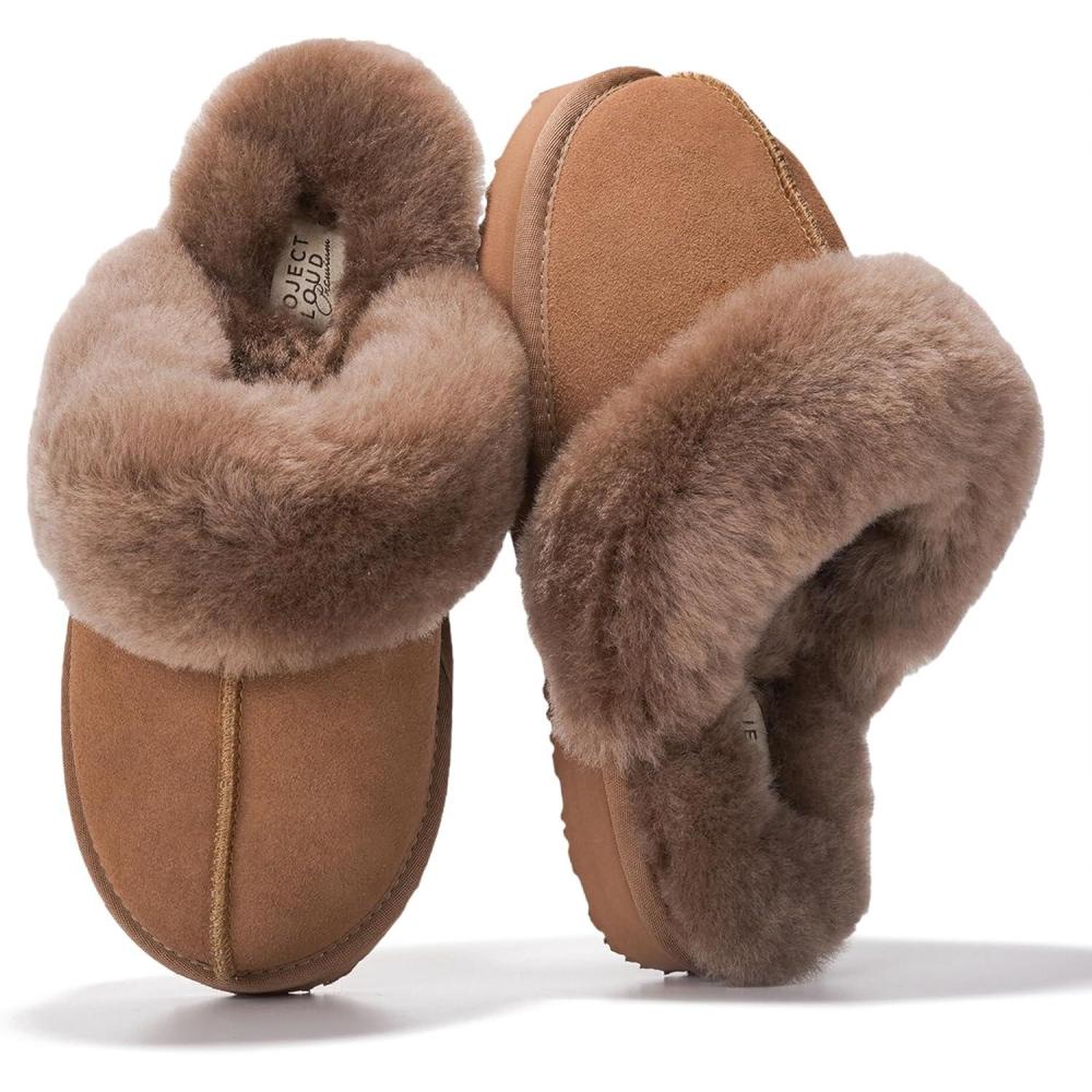 Project Cloud Genuine Leather Slippers for Women Footwear with Genuine Fur Lining Womens Clogs & Mule – Non-Slip Indoor/Outdoor Scuff Womens Slippers with Memory Foam Insole (Henka)(Chestnut)