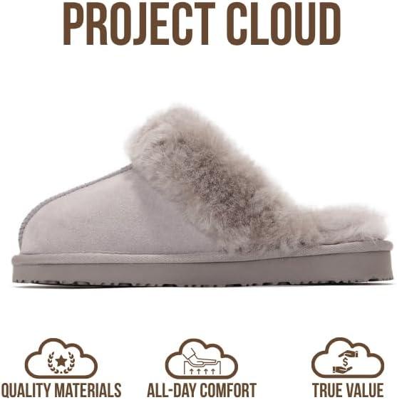 Project Cloud Genuine Leather Slippers for Women Footwear with Genuine Fur Lining Womens Clogs & Mule – Non-Slip Indoor/Outdoor Scuff Womens Slippers with Memory Foam Insole (Henka)(Frost Suede)
