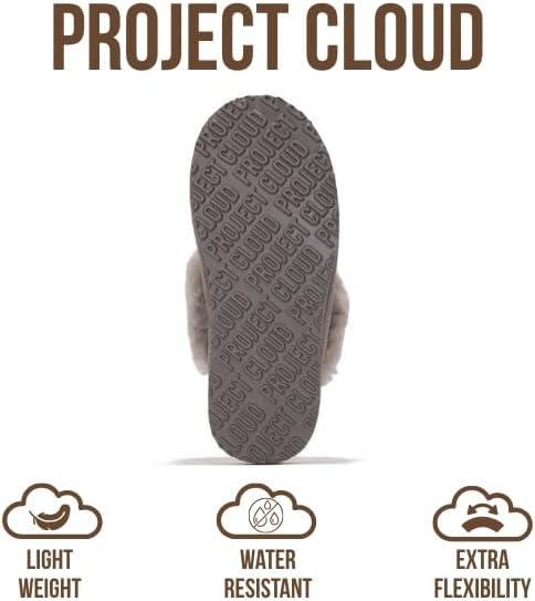 Project Cloud Genuine Leather Slippers for Women Footwear with Genuine Fur Lining Womens Clogs & Mule – Non-Slip Indoor/Outdoor Scuff Womens Slippers with Memory Foam Insole (Henka)(Grey)