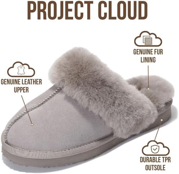 imageProject Cloud Genuine Leather Slippers for Women Footwear with Genuine Fur Lining Womens Clogs ampamp Mule  NonSlip IndoorOutdoor Scuff Womens Slippers with Memory Foam Insole HenkaSand Suede
