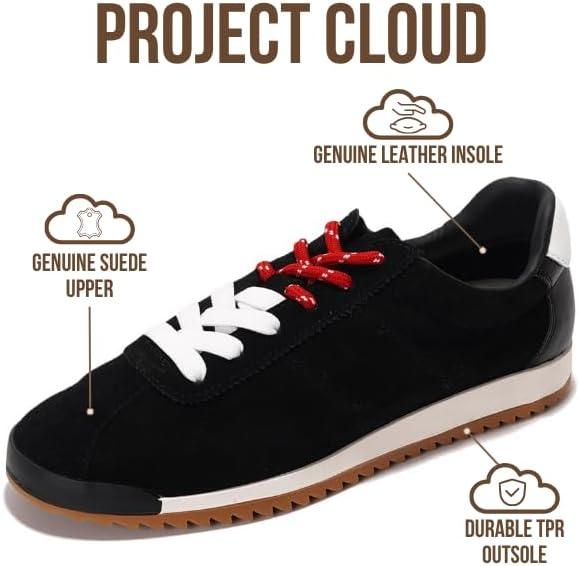 Project Cloud Genuine Leather Sneakers for Women – Womens Sneakers with Memory Foam Insole – Lightweight & Non Slip Womens Shoes – Stylish Fall Shoes for Women 2025 (Lynn)(Black Suede)