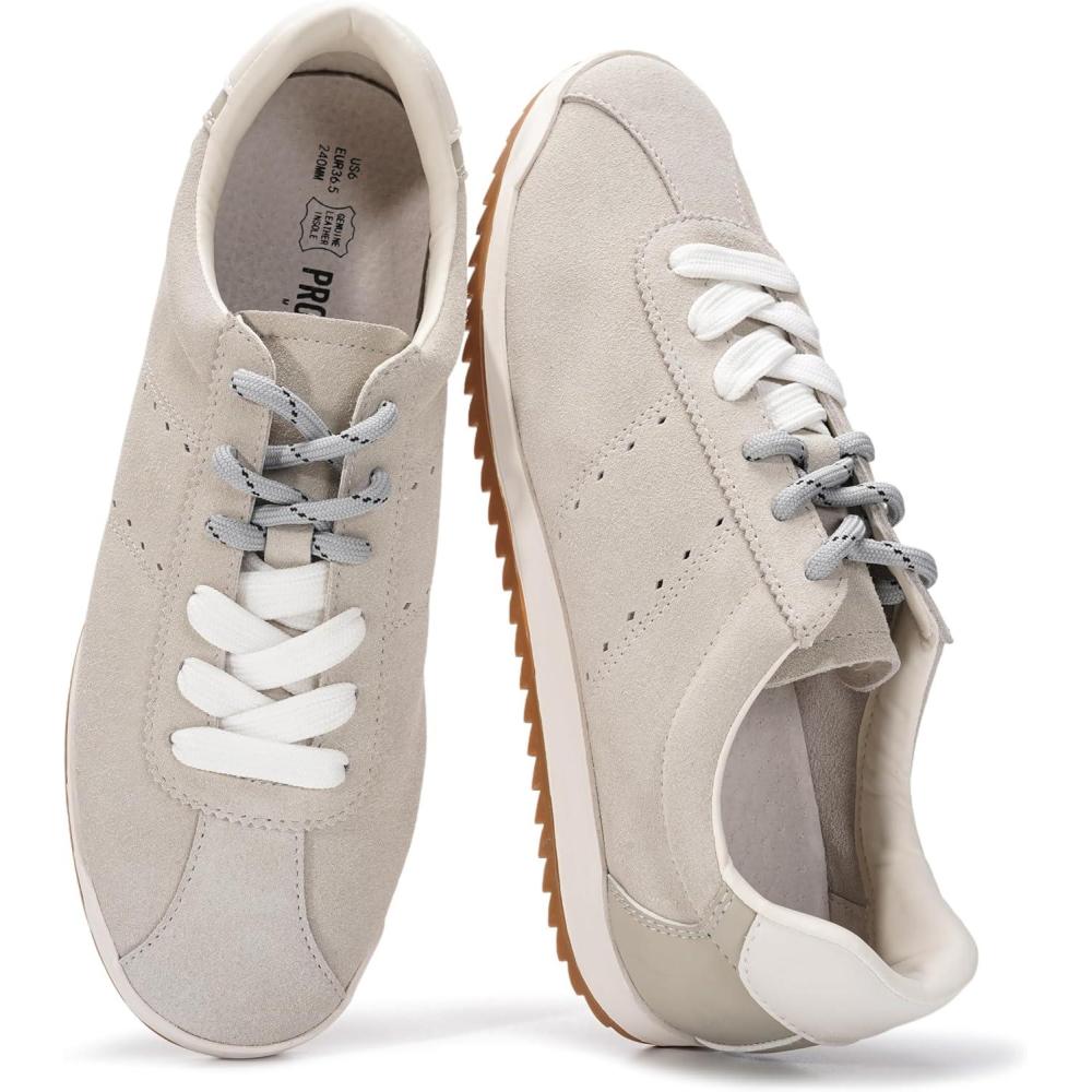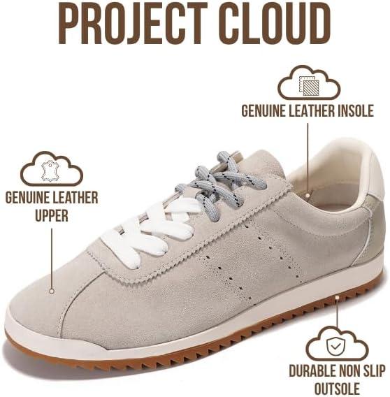Project Cloud Genuine Leather Sneakers for Women – Womens Sneakers with Memory Foam Insole – Lightweight & Non Slip Womens Shoes – Stylish Fall Shoes for Women 2025 (Lynn)(Off-white Suede)