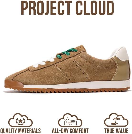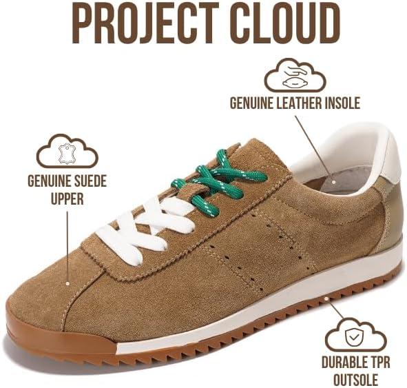 Project Cloud Genuine Leather Sneakers for Women – Womens Sneakers with Memory Foam Insole – Lightweight & Non Slip Womens Shoes – Stylish Fall Shoes for Women 2025 (Lynn)(Tan Suede)