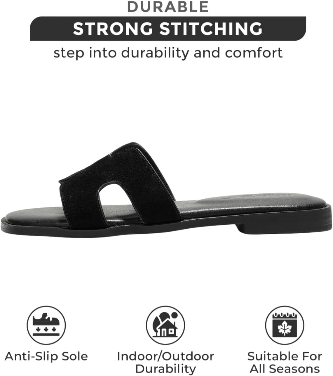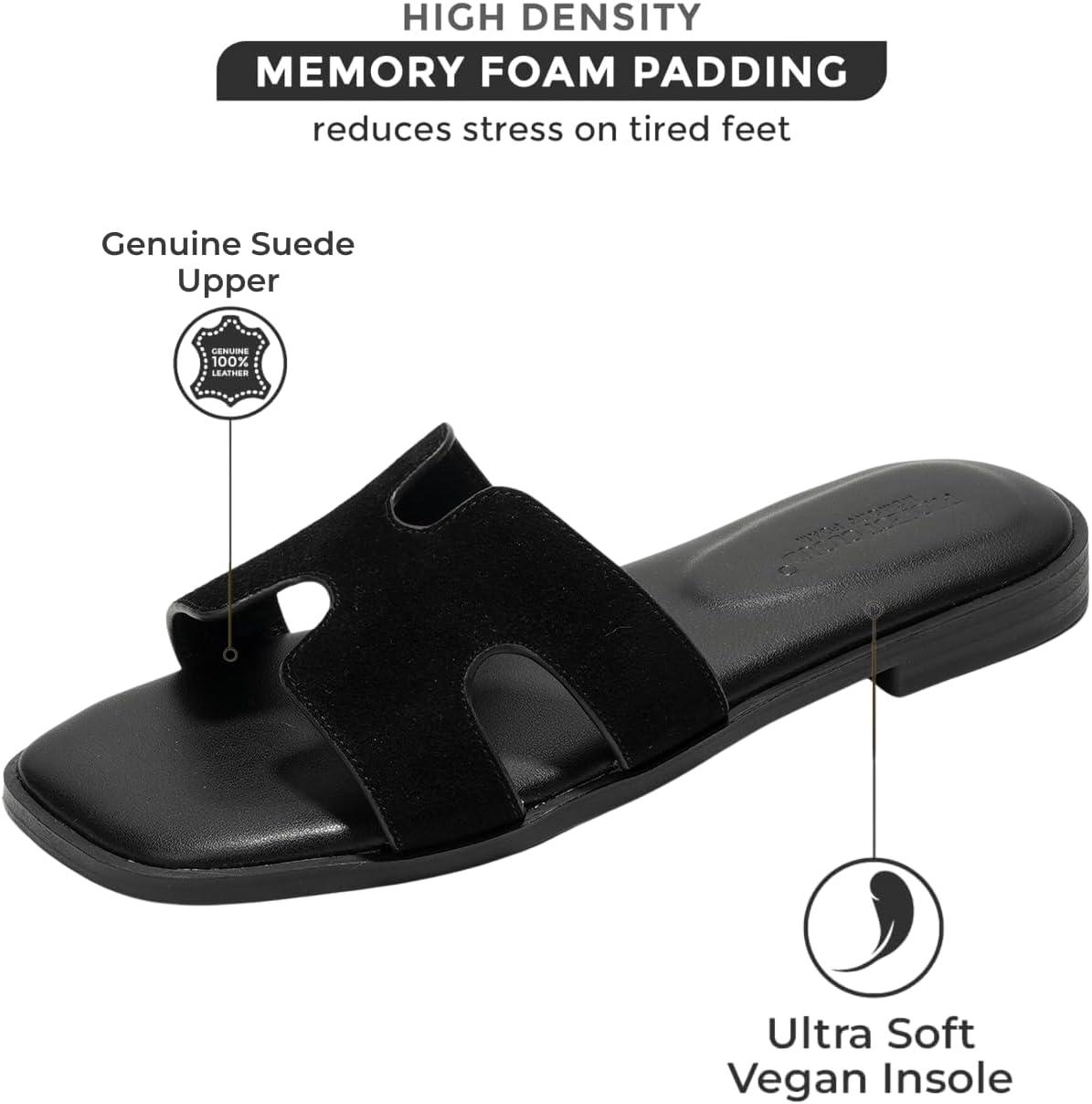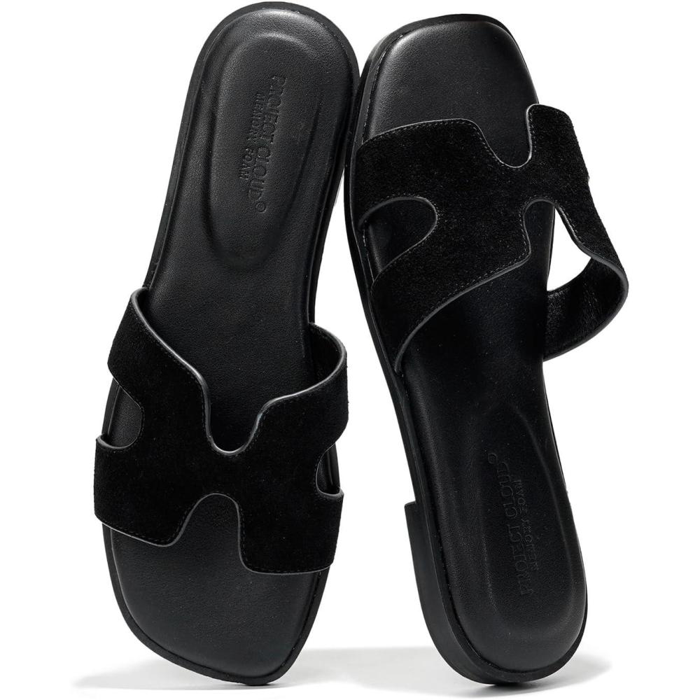 Project Cloud Genuine Leather Summer Sandals for Women 2025 - Fashion Flat Womens Sandals with Memory Foam Insole Slides Sandals Women Footwear - Mules Women's Sandals (Jannel)(Black Suede)