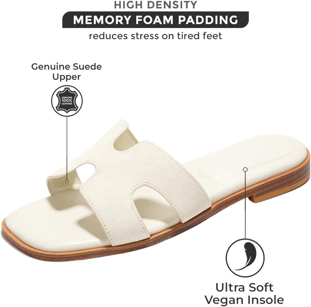 Project Cloud Genuine Leather Summer Sandals for Women 2025 - Fashion Flat Womens Sandals with Memory Foam Insole Slides Sandals Women Footwear - Mules Women's Sandals (Jannel)(Bone)