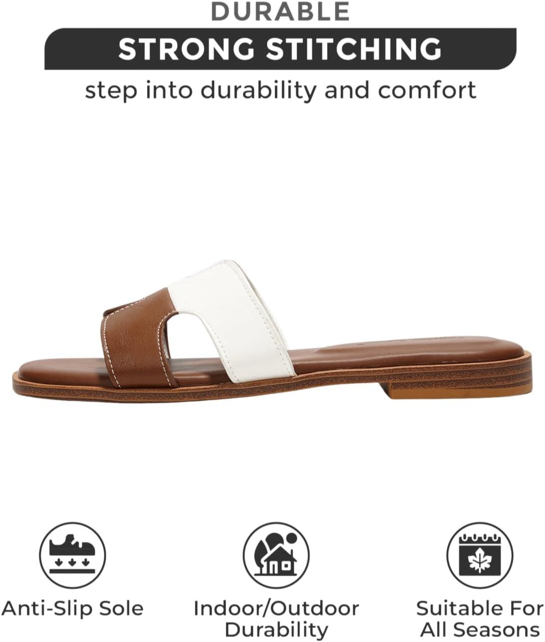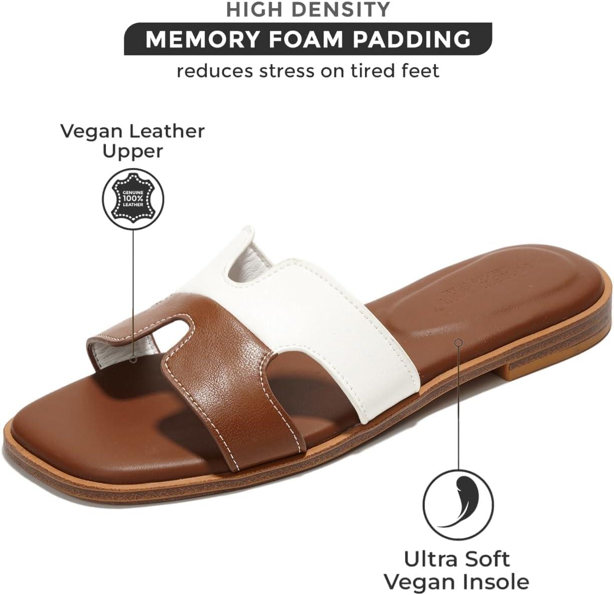 Project Cloud Genuine Leather Summer Sandals for Women 2025 - Fashion Flat Womens Sandals with Memory Foam Insole Slides Sandals Women Footwear - Mules Women's Sandals (Jannel)(Brown White)