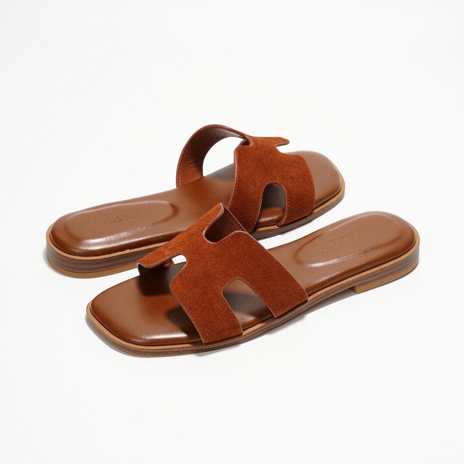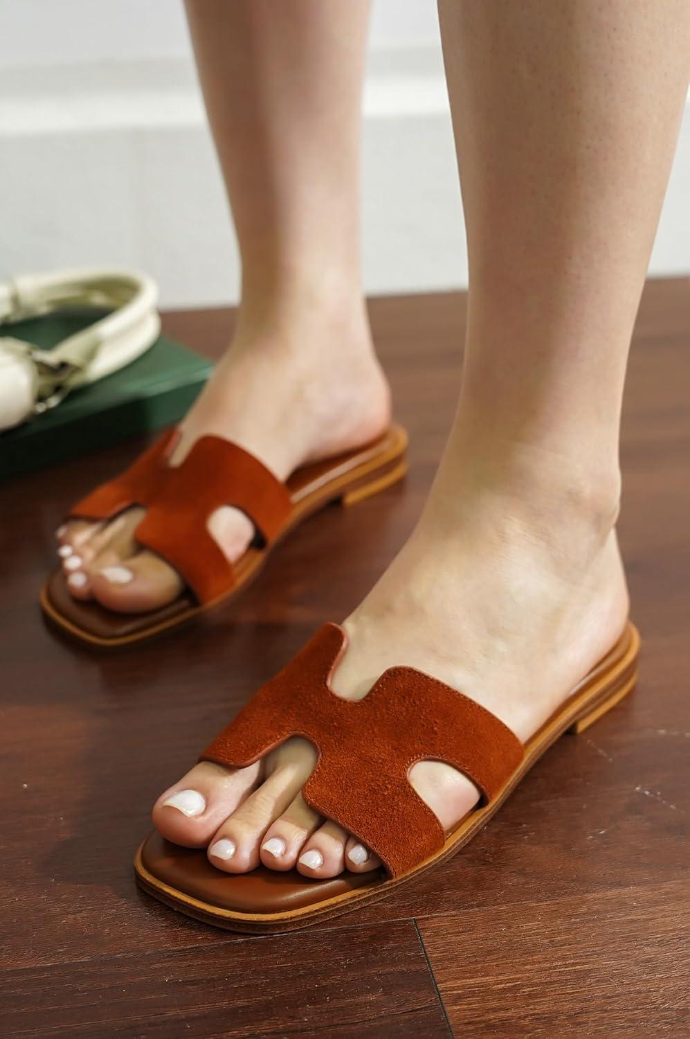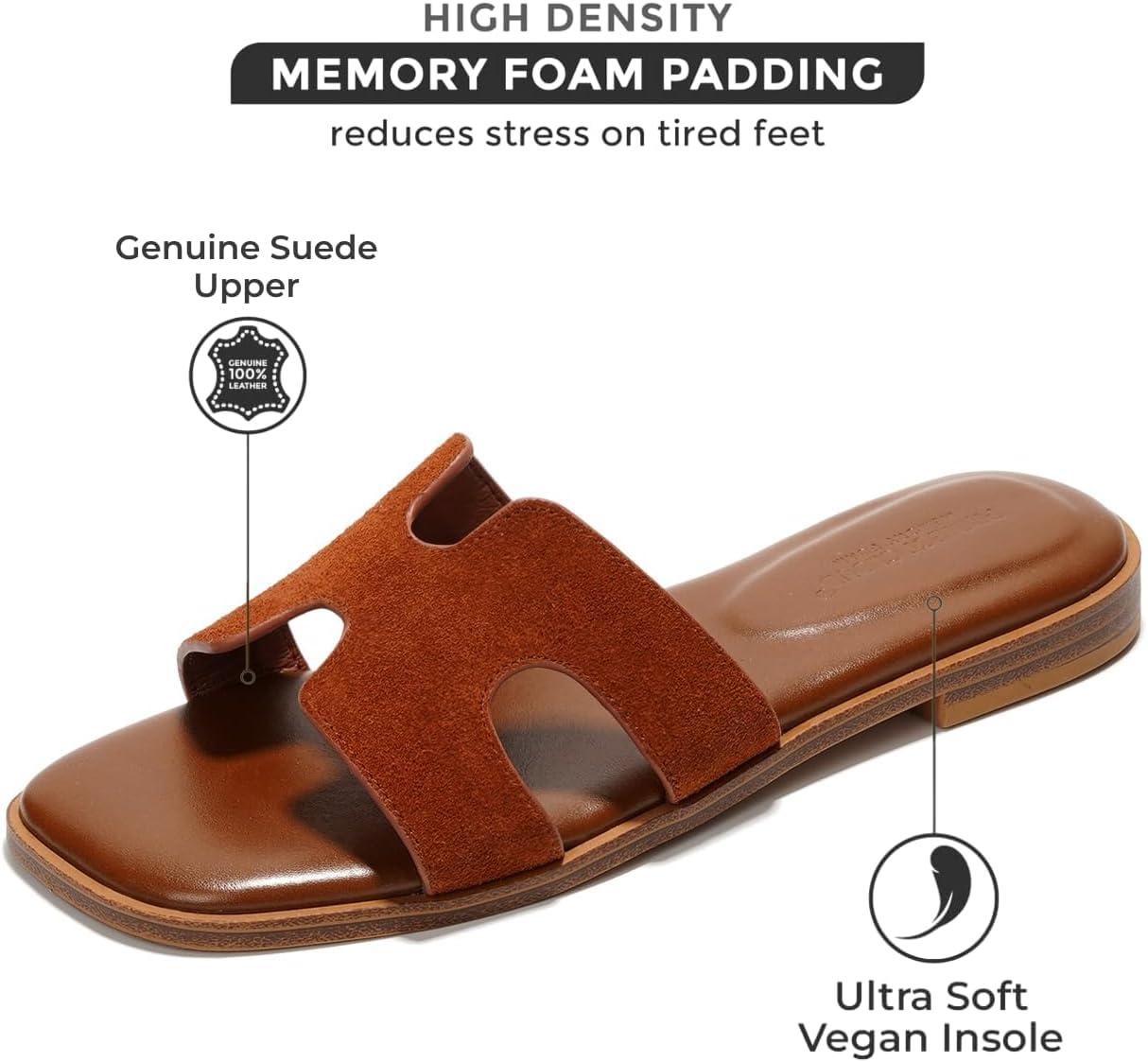 Project Cloud Genuine Leather Summer Sandals for Women 2025 - Fashion Flat Womens Sandals with Memory Foam Insole Slides Sandals Women Footwear - Mules Women's Sandals (Jannel)(Brown)