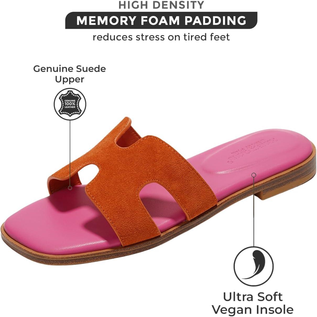 Project Cloud Genuine Leather Summer Sandals for Women 2025 - Fashion Flat Womens Sandals with Memory Foam Insole Slides Sandals Women Footwear - Mules Women's Sandals (Jannel)(Orange)