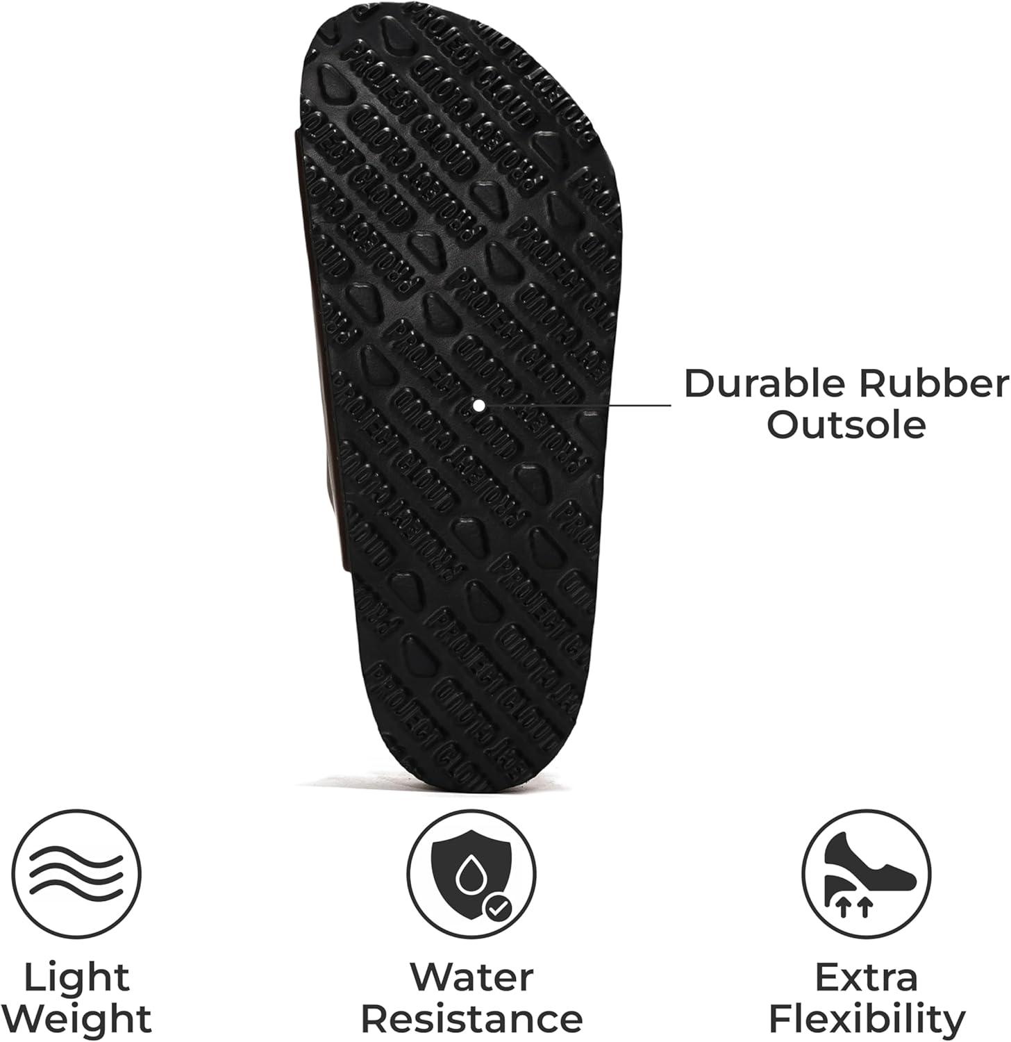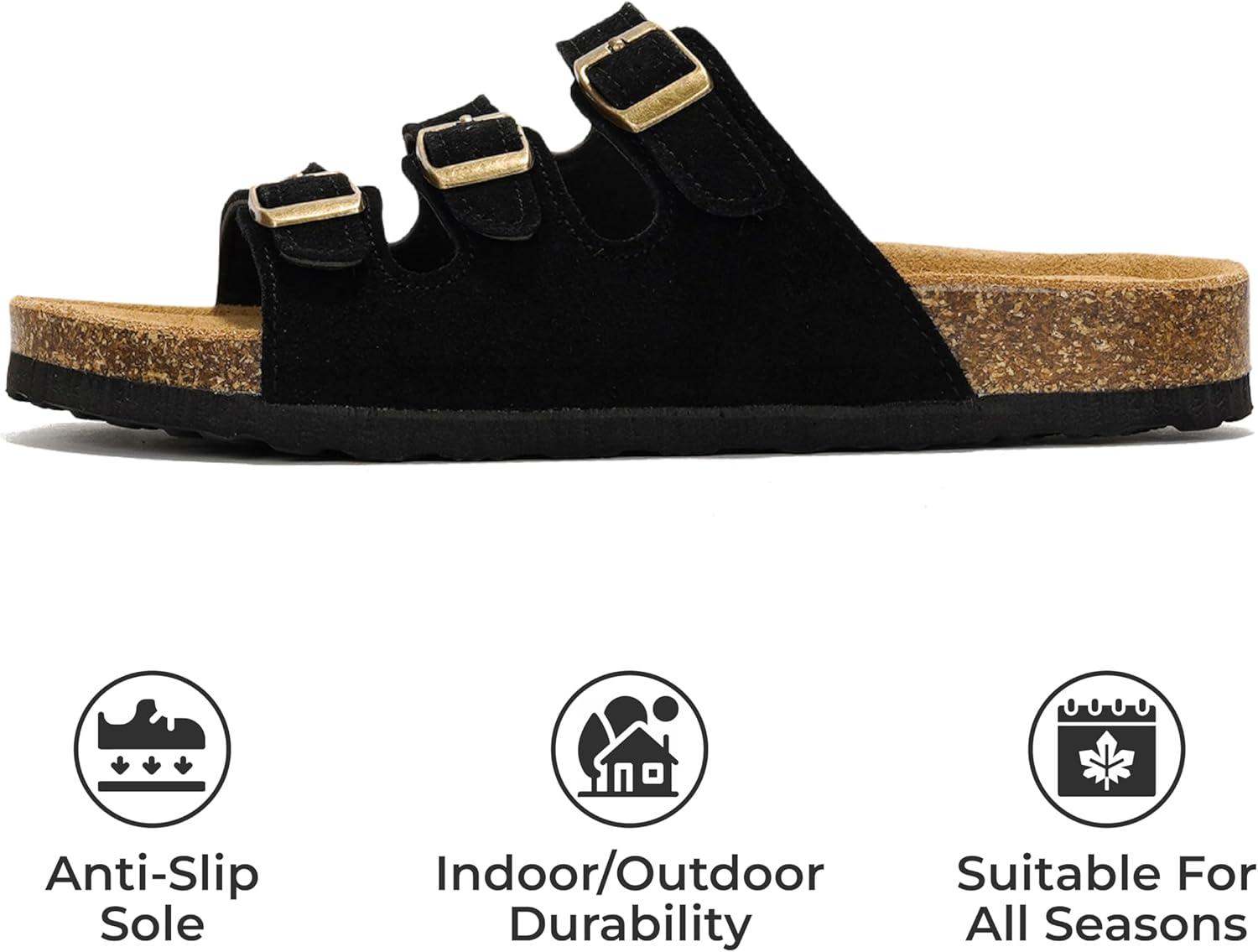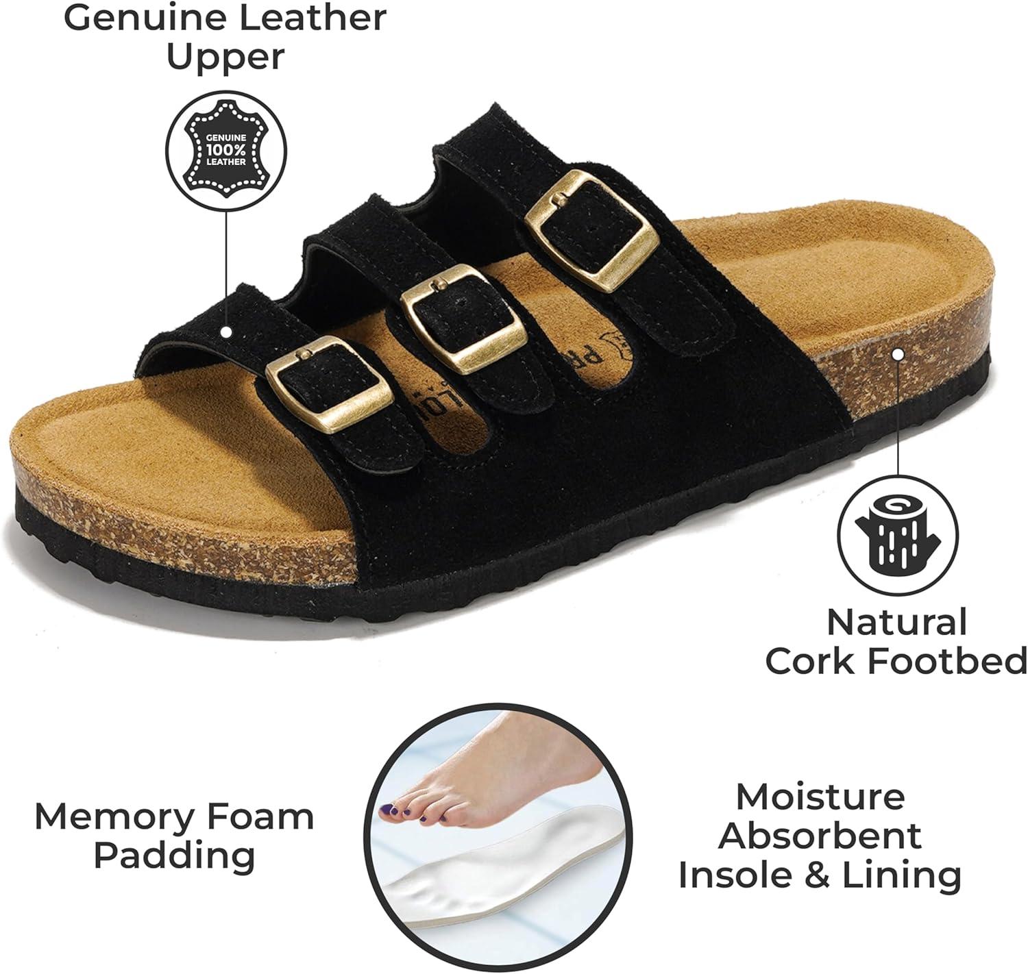 Project Cloud Genuine Leather Summer Sandals for Women 2025 – Memory Foam & Cork Footbed Beach Vacation Essentials Womens Sandals Comfortable Lightweight Slides for Women Footwear (Capri)(Black Suede)