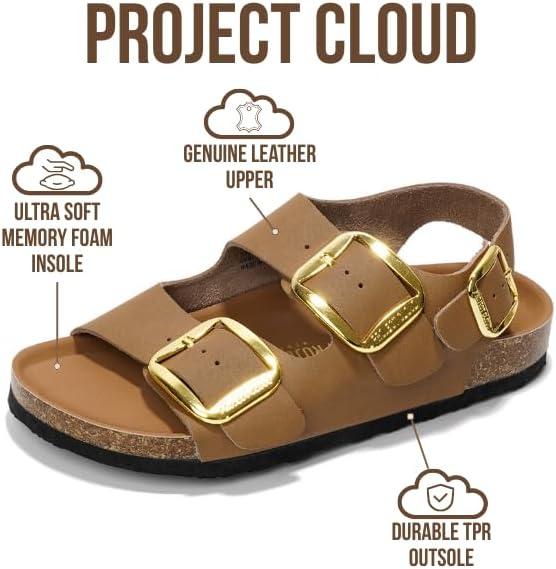 Project Cloud Genuine Leather Summer Sandals for Women 2025 - Memory Foam Slingback Womens Sandals Comfortable and Non Slip Beach Slides with Big Buckle (Garda)(Tan)
