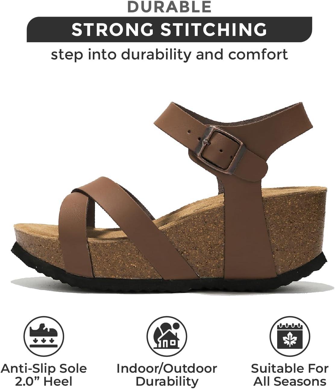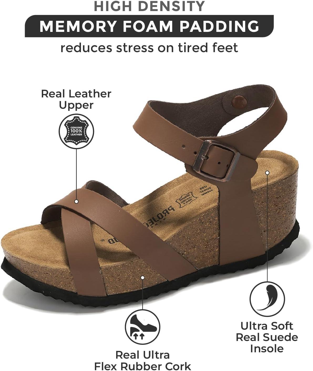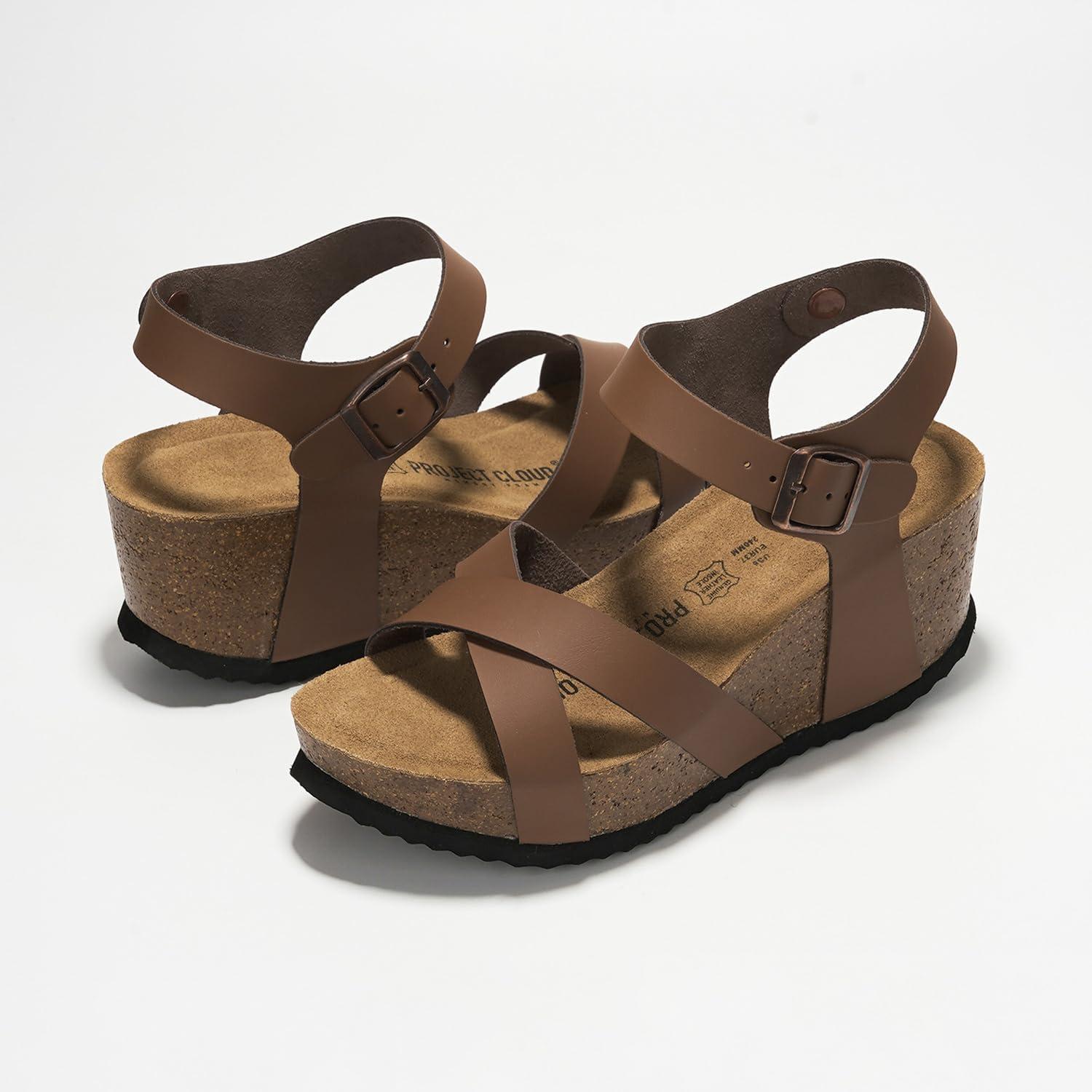 Project Cloud Genuine Leather Wedge Sandals for Women 2025 - Womens Sandals & Wedges with Memory Foam Insole & Cork Footbed - Platform Wedges Women Footwear (Cabana)(Tan)