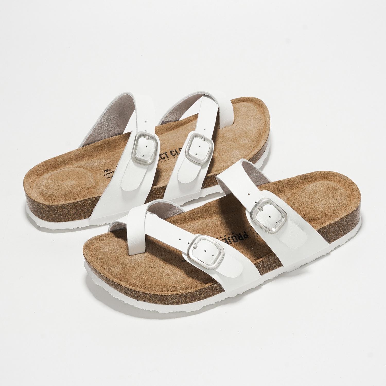 Project Cloud Genuine Leather Womens Sandals – Comfortable Cork Footbed Slides with Memory Foam Beach Essential Summer Sandals For Women 2025 (Lian)(White)