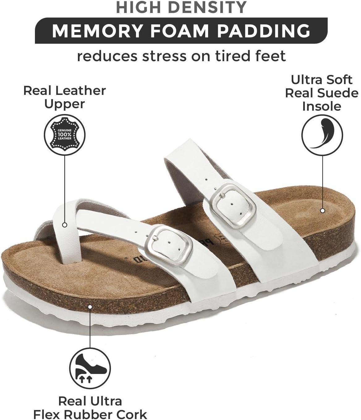 Project Cloud Genuine Leather Womens Sandals - Comfortable Cork Footbed Slides with Memory Foam Beach Essential Summer Sandals For Women 2025 (Lian)(White)
