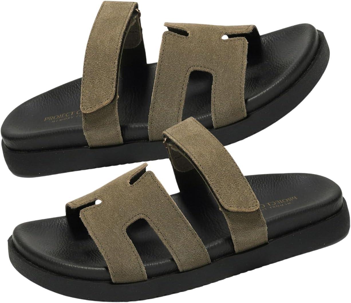 Project Cloud Genuine Leather Womens Sandals - Stylish & Comfy Sandals for Women Footwear with Memory Foam Insole - Slip-resistant Slides for Women (Mayven)(Olive)