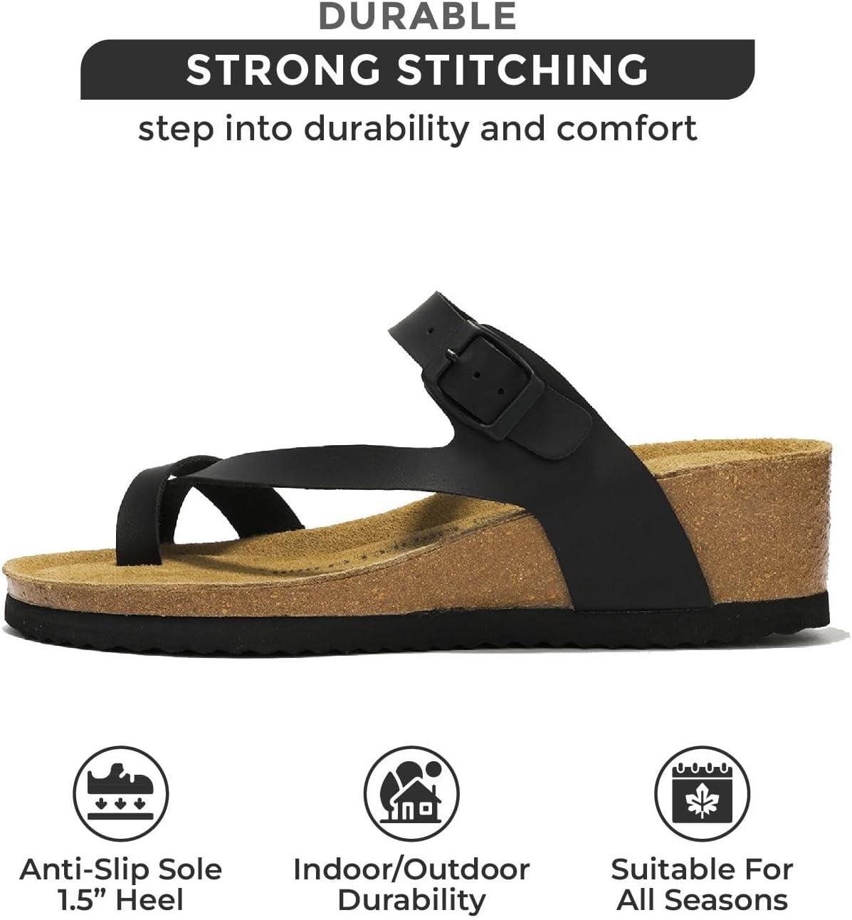 Project Cloud Genuine Leather Womens Sandals Wedge – Wedge Sandals & Slippers – Memory Foam Women Footwear Beach Essentials, Non-Slip Sandals for Women 2025(Black-belize)