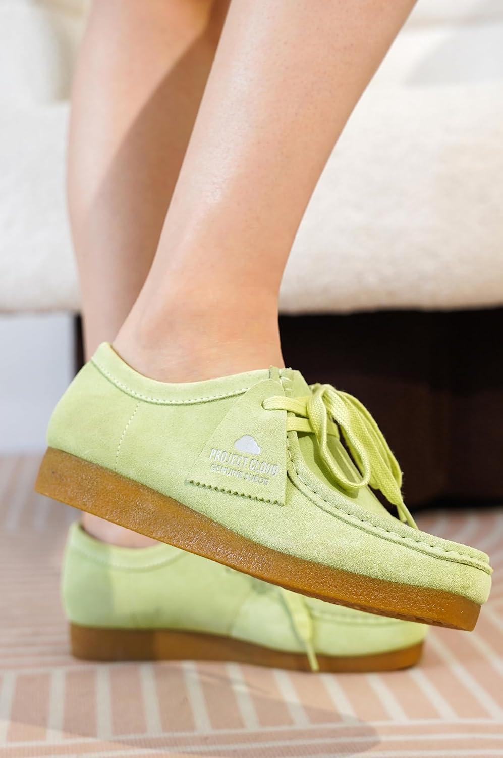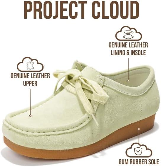 Project Cloud Genuine Leather Womens Shoes – Memory Foam Insole Oxford Shoes For Women Footwear – Lightweight Anti-Slip Sole Casual Work Loafers with Lace (Wally)(Green)