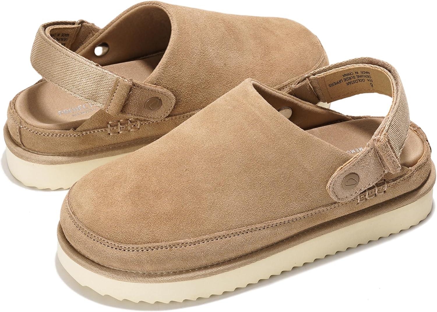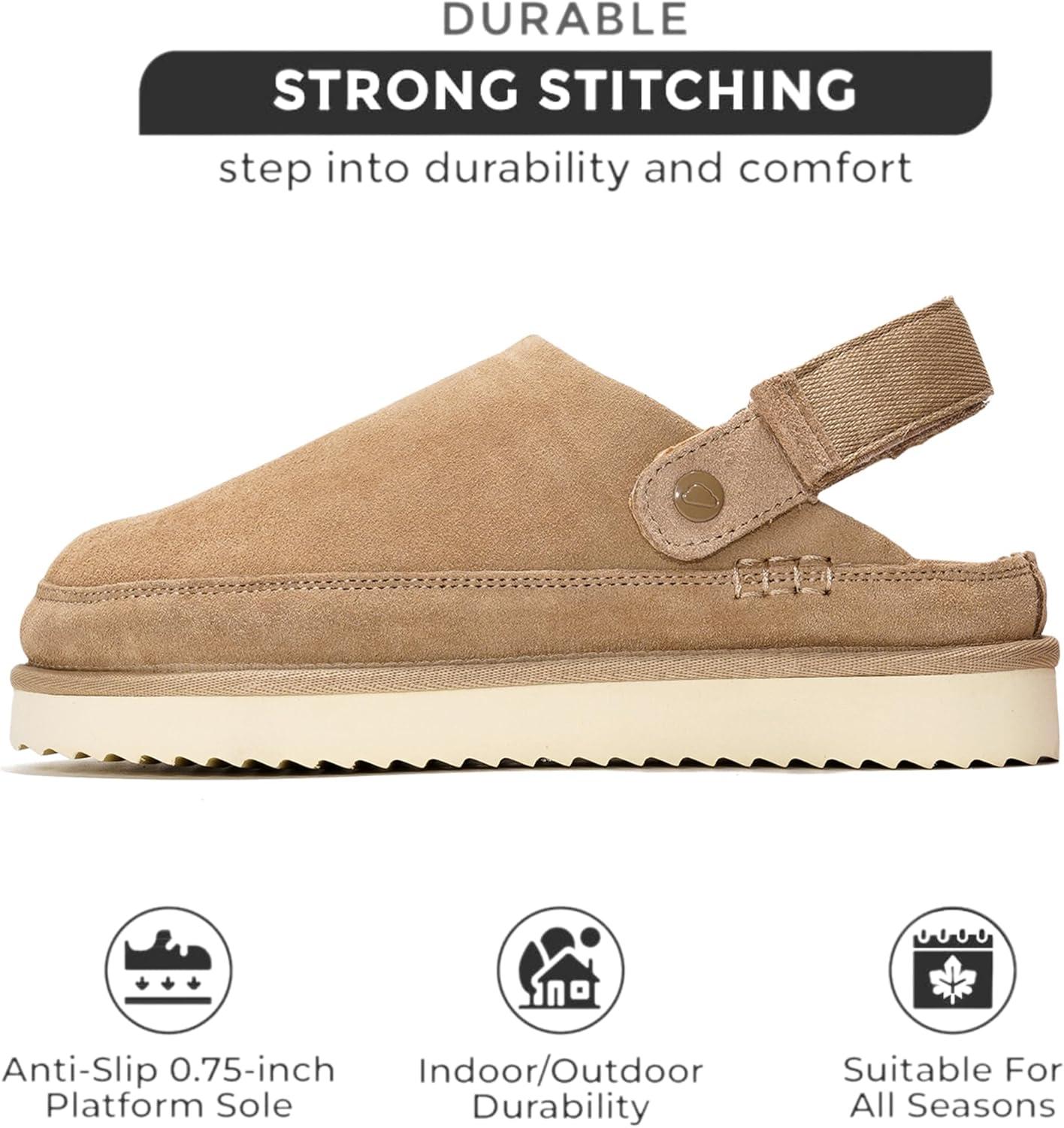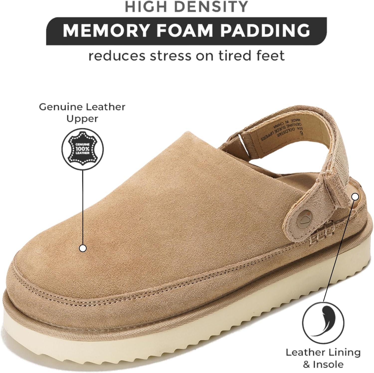 Project Cloud Genuine Suede Clogs for Women – Memory Foam Womens Clogs & Mules with Adjustable Straps – Lightweight Platform Shoes Non-Slip Slides (Goldstar)(Sand Suede)