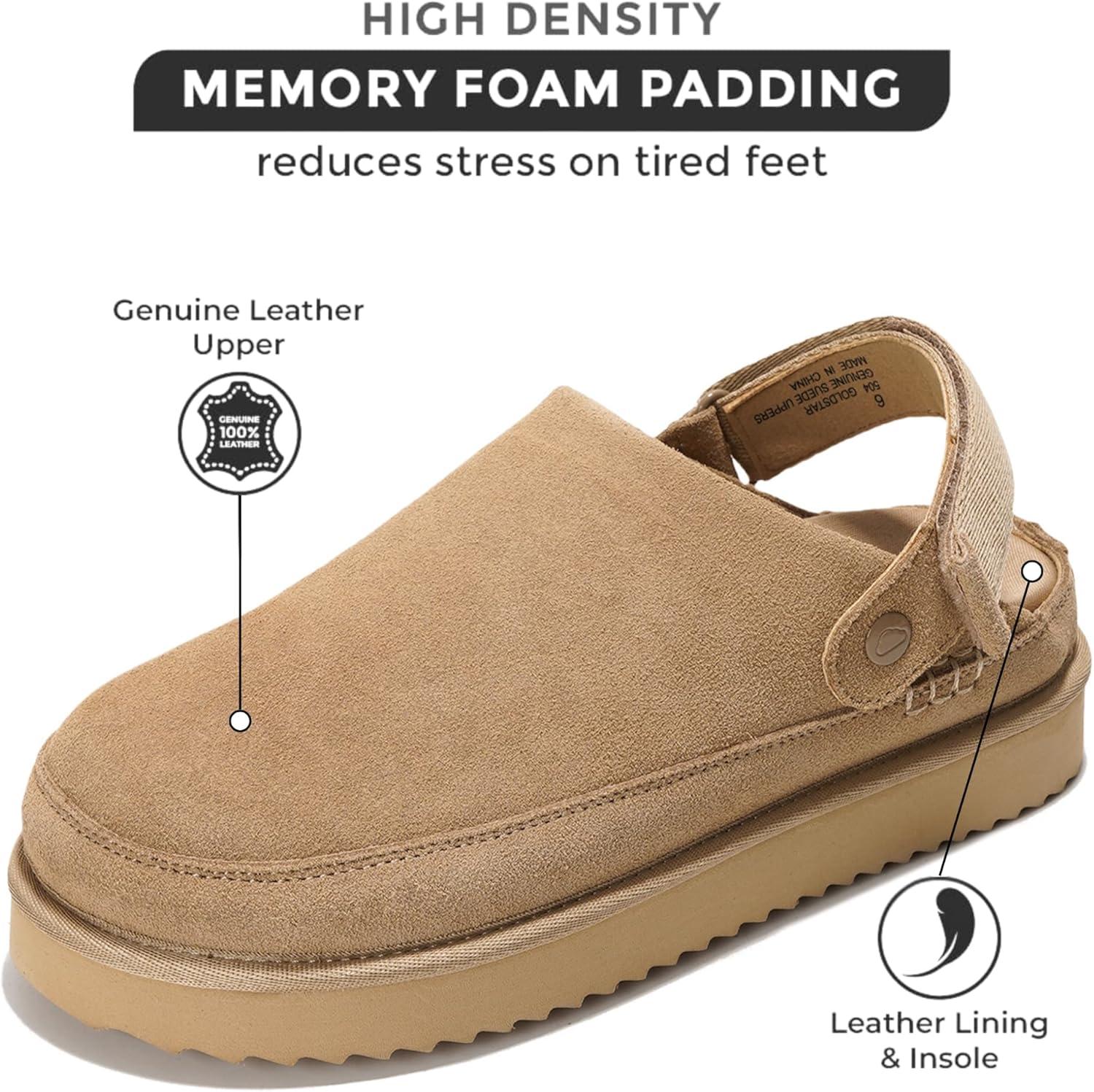 Project Cloud Genuine Suede Clogs for Women – Memory Foam Womens Clogs & Mules with Adjustable Straps – Lightweight Platform Shoes Non-Slip Slides (Goldstar)(Sand)