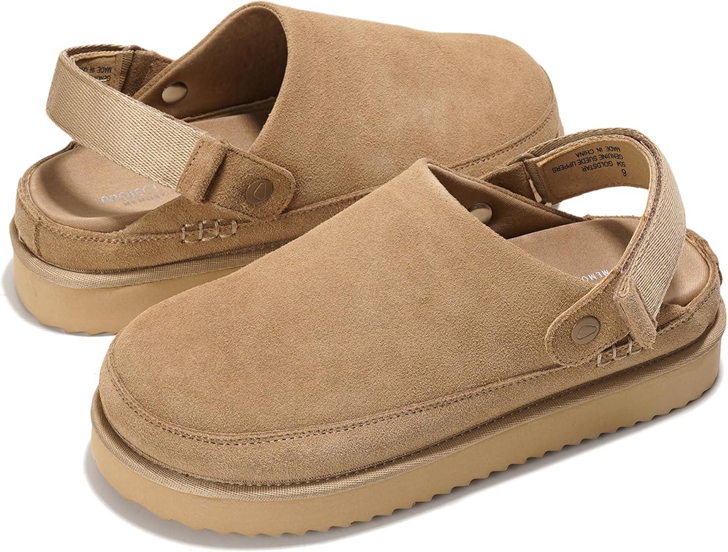 Project Cloud Genuine Suede Clogs for Women – Memory Foam Womens Clogs & Mules with Adjustable Straps – Lightweight Platform Shoes Non-Slip Slides (Goldstar)(Khaki Suede)