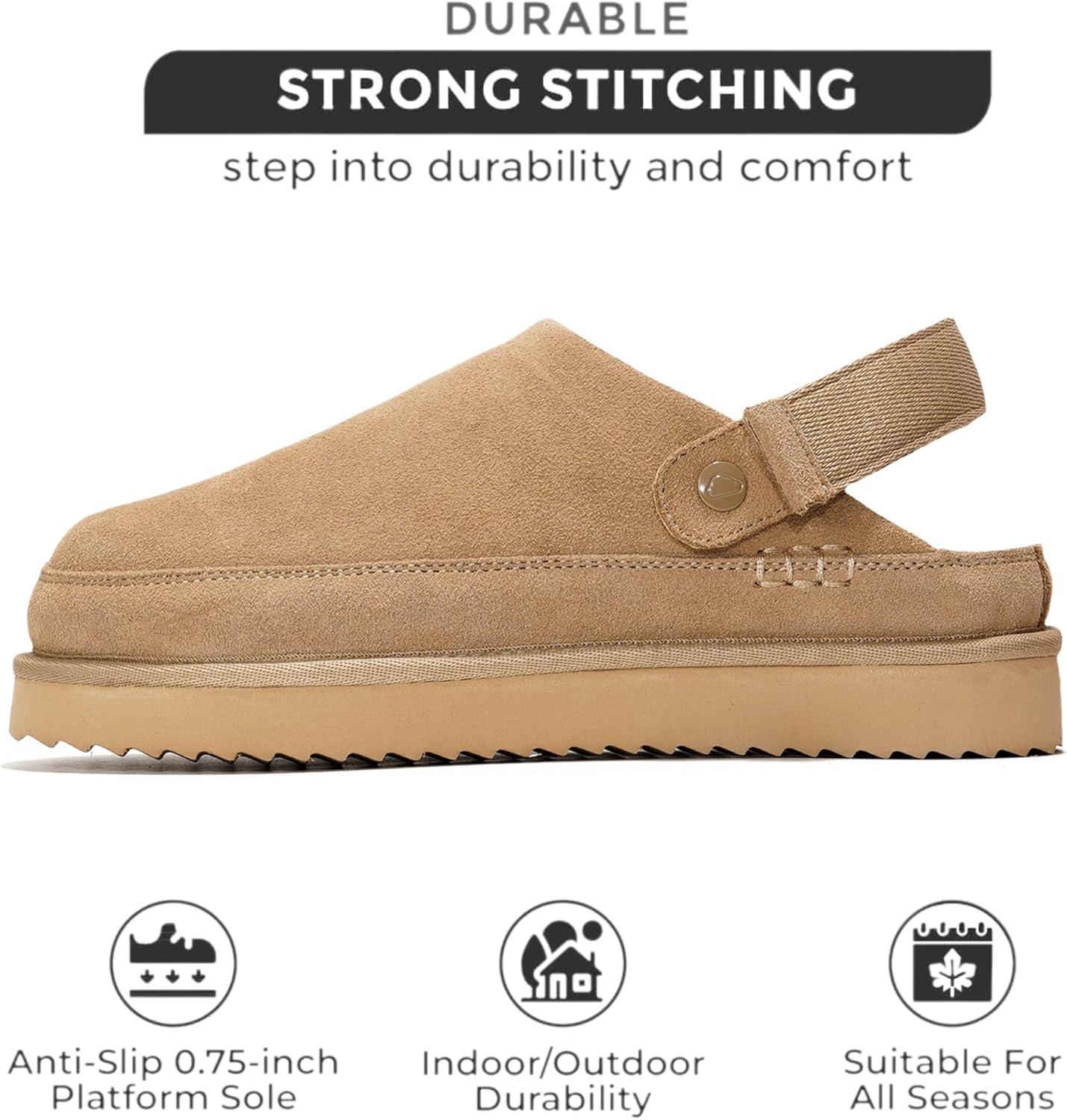 Project Cloud Genuine Suede Clogs for Women – Memory Foam Womens Clogs & Mules with Adjustable Straps – Lightweight Platform Shoes Non-Slip Slides (Goldstar)(Sand Suede)