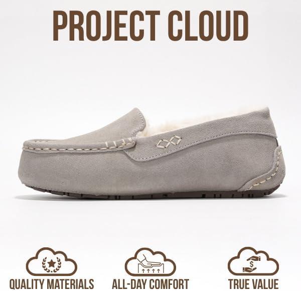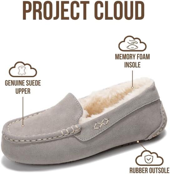 Project Cloud Genuine Suede Loafers for Women - Comfortable Outdoor Slippers for Women Footwear with Memory Foam - Womens Slippers - Stylish Womens Moccasin (Cathi)(Grey)