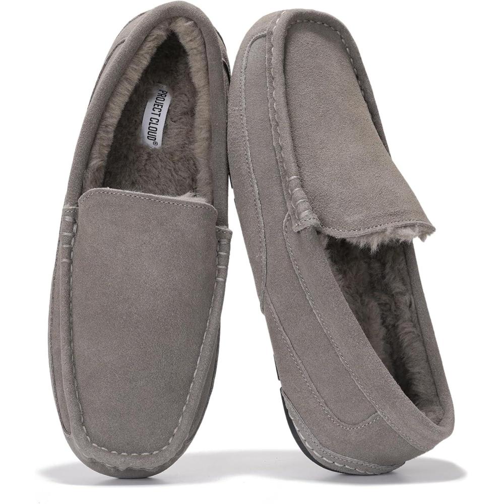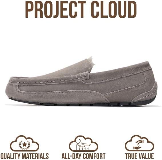 Project Cloud Genuine Suede Mens Slippers - Memory Foam Insole Moccassins Loafers for Men Shoes Indoor and Outdoor Use - Lightweight Non-Slip House Shoes (Oswin)(Grey)