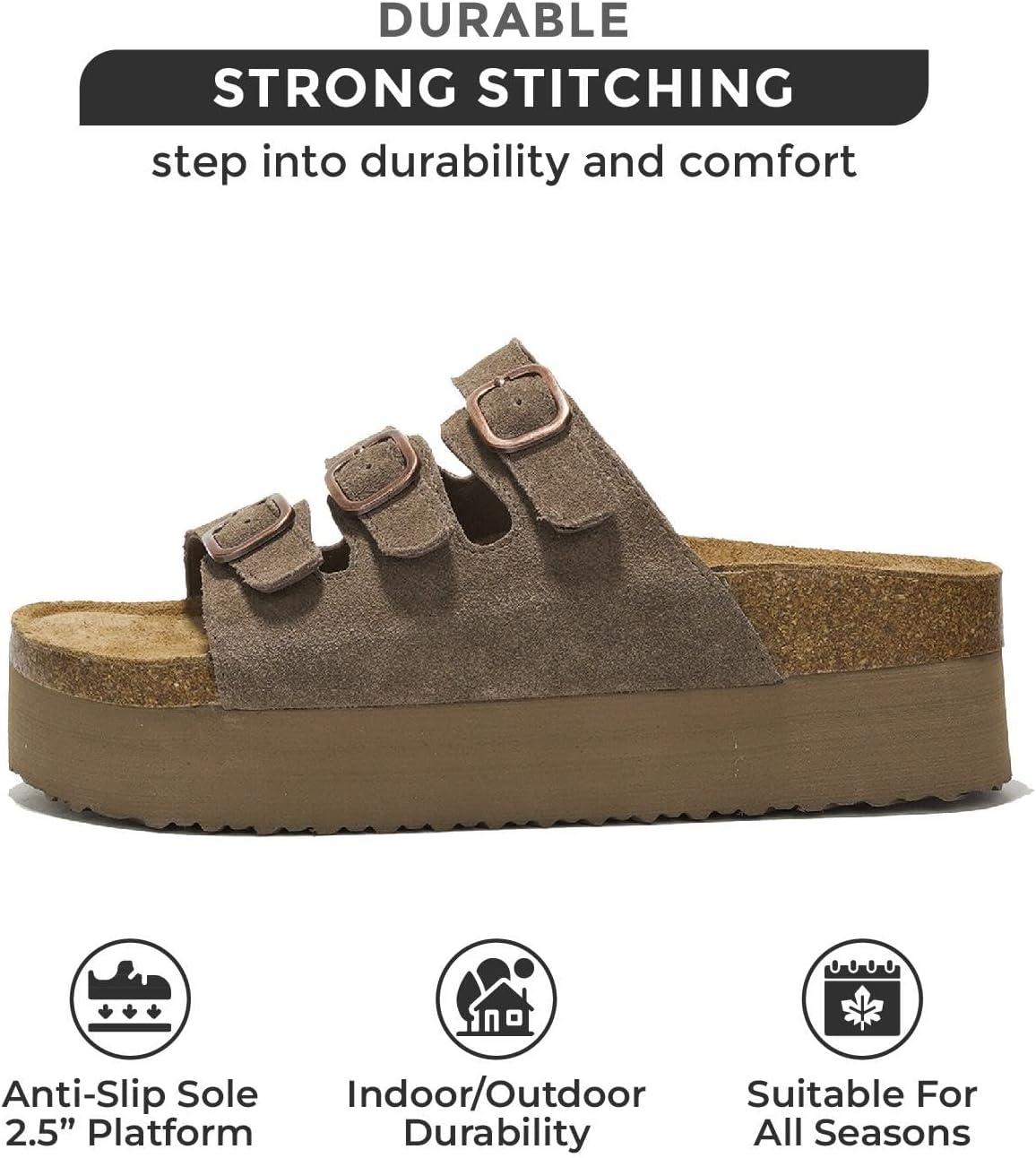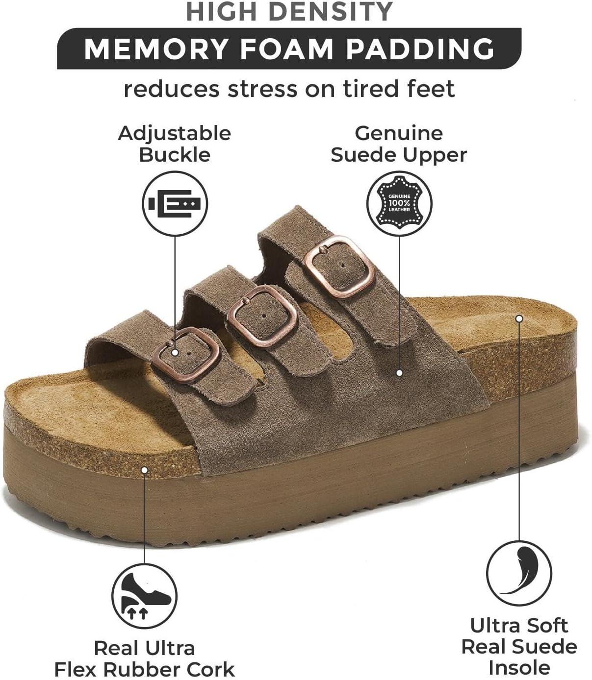imageProject Cloud Genuine Suede Platform Sandals Women Footwear  Comfortable Wedges with Memory Foam Insole  Non Slip 3Strap Summer Sandals for Women 2025 DyanChestnut