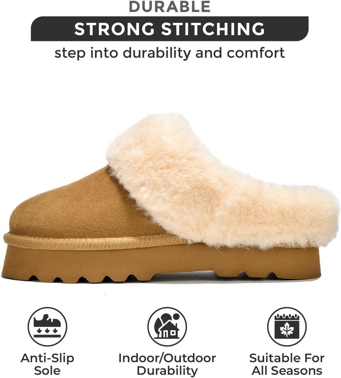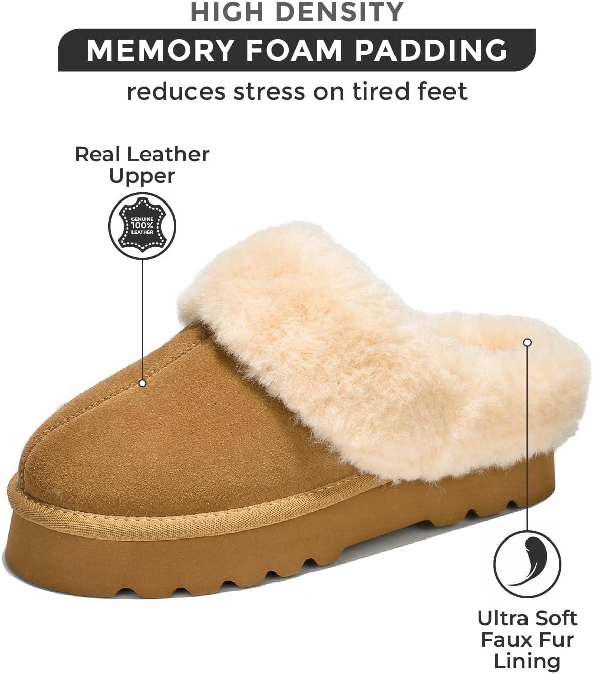 Project Cloud Genuine Suede Slippers for Women Indoor Outdoor Fuzzy Slippers – Platform Sandals Women Footwear – Memory Foam Insole Womens Sandals, Water-resistant Womens Slippers (Snowy)(Chestnut)