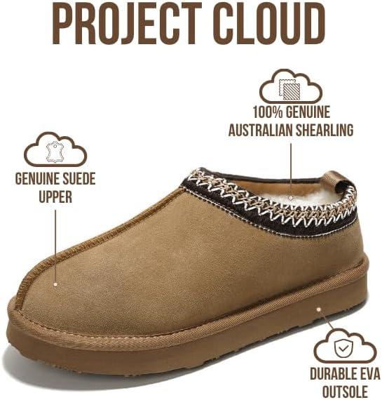 Project Cloud Genuine Suede Slippers for Women with Genuine Australian Shearling Fur Lining Womens Slippers – Non-Slip EVA with Memory Foam Fuzzy Slippers Women Footwear (Nerita)(Chestnut)
