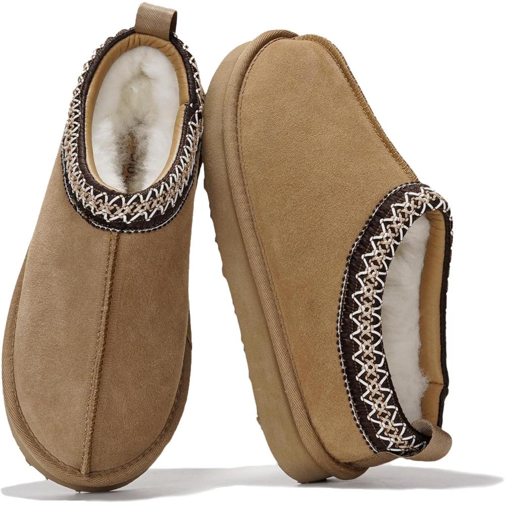Project Cloud Genuine Suede Slippers for Women with Genuine Australian Shearling Fur Lining Womens Slippers - Non-Slip EVA with Memory Foam Fuzzy Slippers Women Footwear (Nerita)(Chestnut)