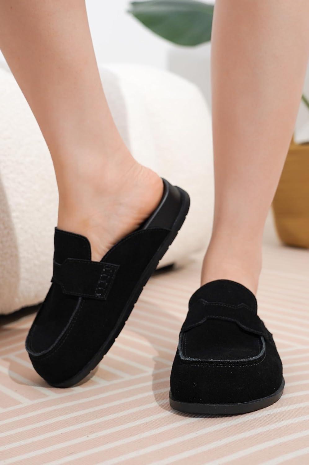 Project Cloud Genuine Suede Womens Clog – Memory Foam Arch Support Non-Slip Sole Mules & Clogs for Women Footwear – Platform Winter Shoes (Foamy)(Black Suede)