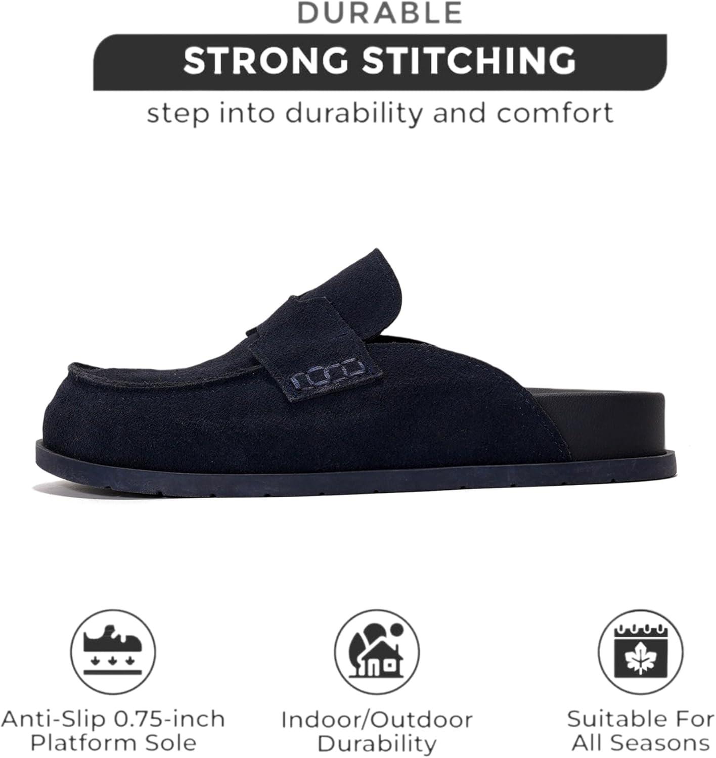 Project Cloud Genuine Suede Womens Clog – Memory Foam Arch Support Non-Slip Sole Mules & Clogs for Women Footwear – Platform Winter Shoes (Foamy)(Midnight Suede)