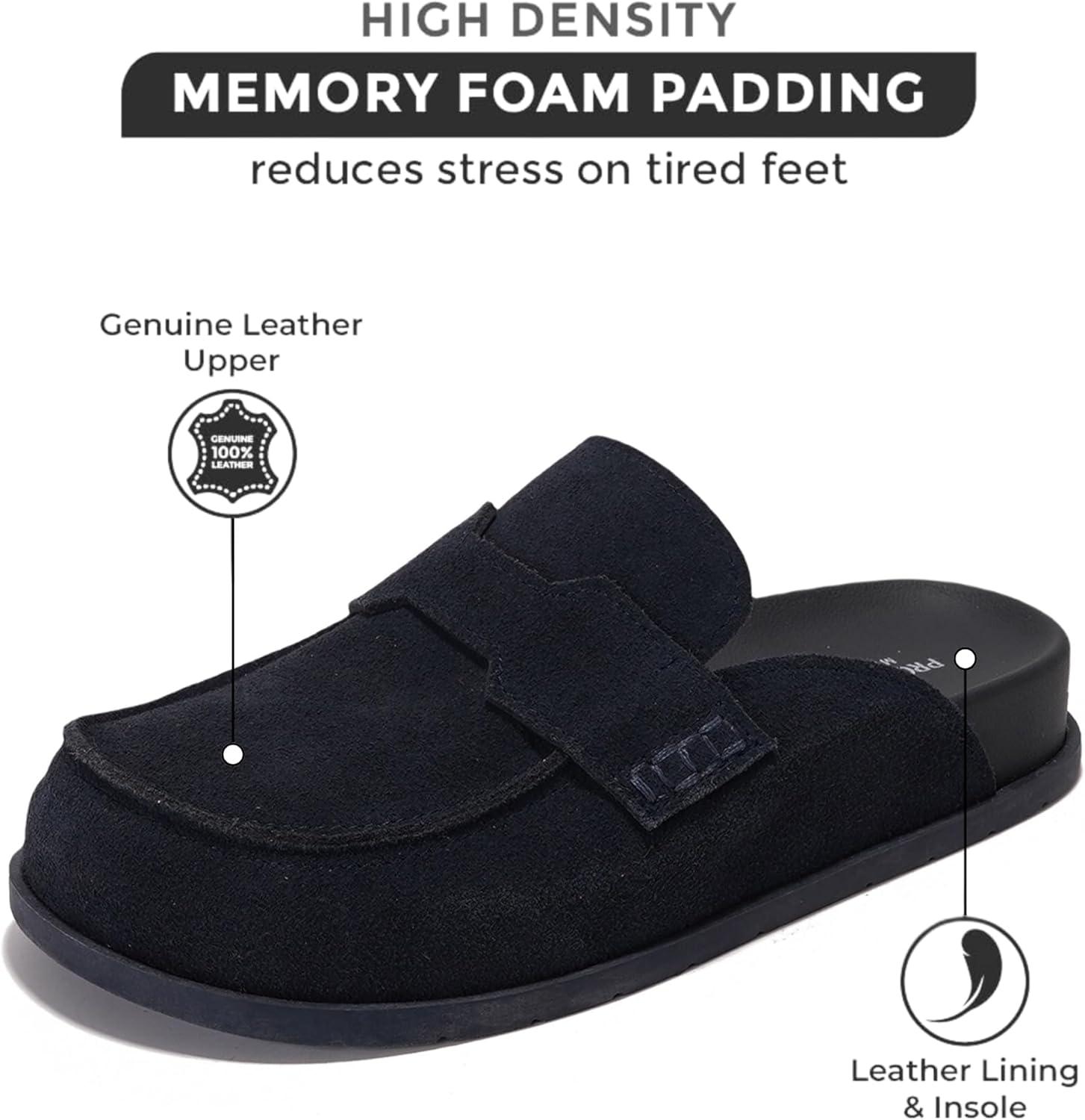 Project Cloud Genuine Suede Womens Clog - Memory Foam Arch Support Non-Slip Sole Mules & Clogs for Women Footwear - Platform Winter Shoes (Foamy)(Midnight Suede)
