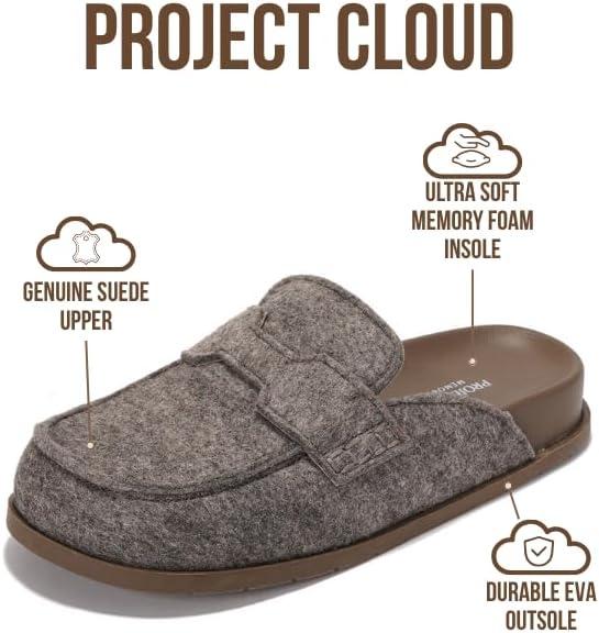 Project Cloud Genuine Suede Womens Clog – Memory Foam Arch Support Non-Slip Sole Mules & Clogs for Women Footwear – Platform Winter Shoes (Foamy)(Taupe Wool)