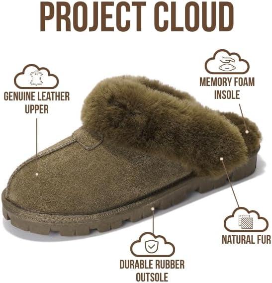imageProject Cloud House Slippers for Women  Genuine Leather ampamp Natural Fur Lining Fluffy Slippers  Memory Foam Womens Shoes HedyOlive