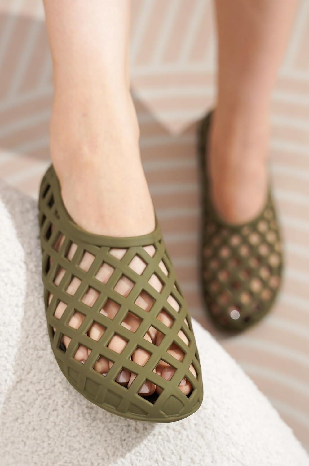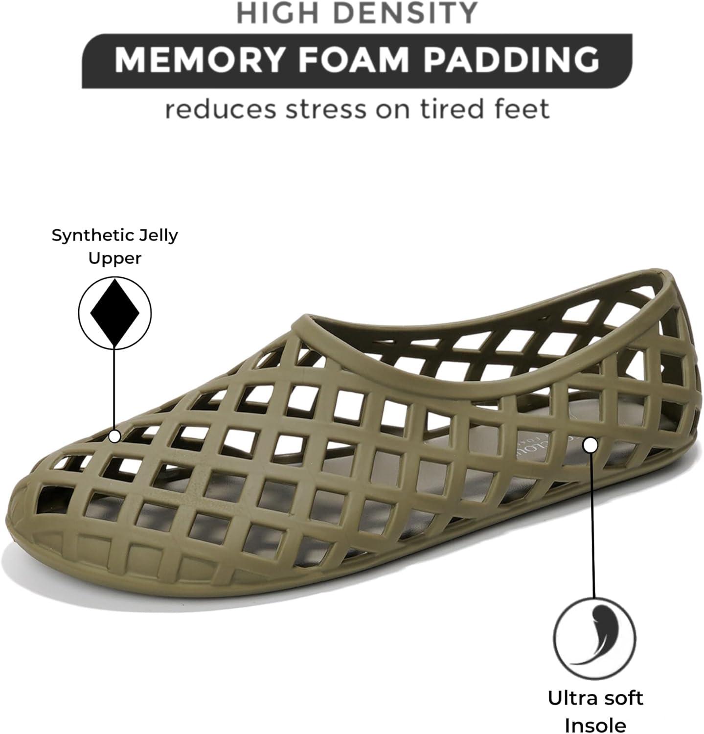 Project Cloud Jelly Shoes Women - Lightweight & Water-Resistant Women's Flats Sandals - Non Slip Womens Shoes - Perfect Summer Jelly Flats for Women 2025 (Jellz)(Olive)