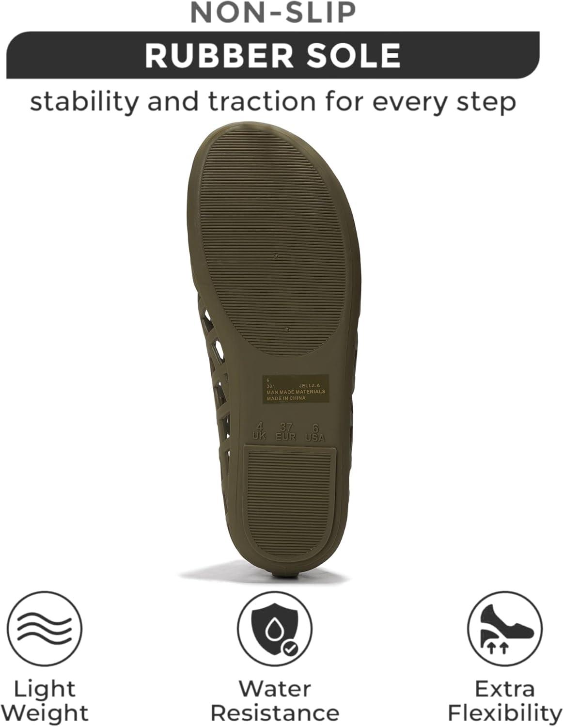 Project Cloud Jelly Shoes Women – Lightweight & Water-Resistant Women’s Flats Sandals – Non Slip Womens Shoes – Perfect Summer Jelly Flats for Women 2025 (Jellz)(Olive)