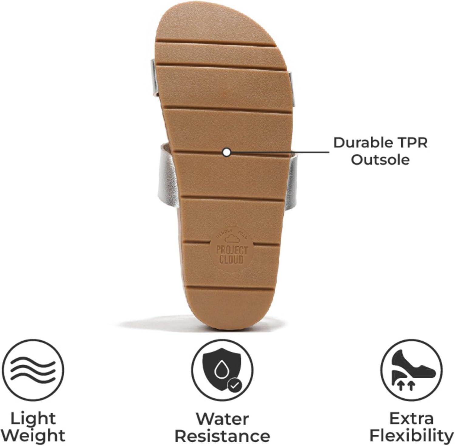 Project Cloud Memory Foam Slide Sandals Women Footwear - Lightweight Two-strap and Non-Slip Vegan Leather Platform Slides - Summer Sandals for Women 2025 (HILLTOP)(Silver)