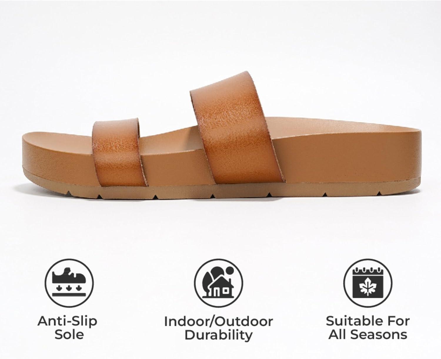 Step into effortless style and comfort with our versatile sandals women, designed for modern women who value both fashion and functionality. Made from premium vegan leather, these women's sandals offer a cruelty-free option without compromising on quality. Featuring a lightweight feel, these platform sandals women are perfect for everyday wear, beach trips, or casual strolls. The durable TPR sole ensures these comfortable sandals for women provide excellent grip and stability, making them reliable beach sandals for woman. Designed with a trendy 2-strap silhouette, these strappy sandals for women elevate your outfit while keeping your feet secure and relaxed. Whether you're searching for stylish beach sandals, womens slides, or womens sandals comfortable enough for long days, these sandals have you covered. Ideal as womens platform sandals, easy-to-wear women slides, or go-to slide sandals women need for versatile styling, they are the perfect pair for every season. Add these to your womens fashion collection as your must-have spring sandals for women 2025, women sandals, and womens slides that transition seamlessly from beach to city.