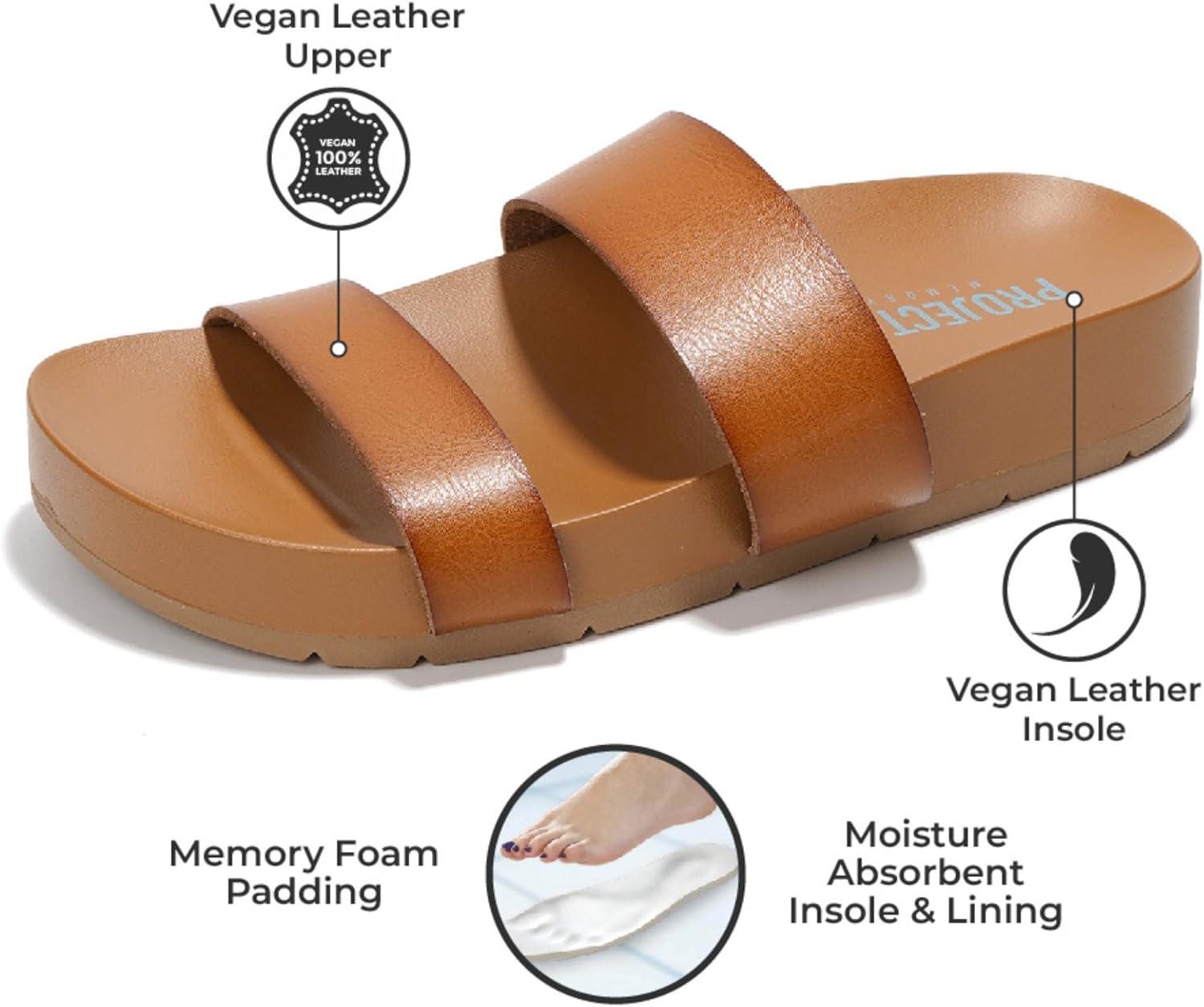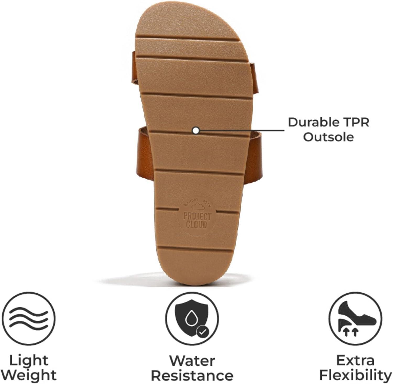 Project Cloud Memory Foam Slide Sandals Women Footwear - Lightweight Two-strap and Non-Slip Vegan Leather Platform Slides - Summer Sandals for Women 2025 (HILLTOP)(Whiskey)