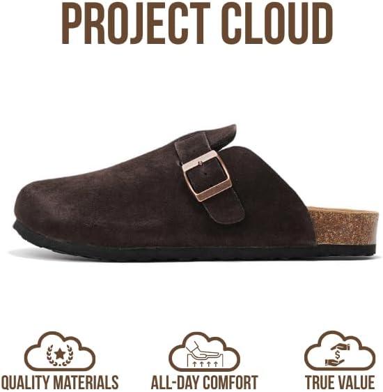 imageProject Cloud Mens Clogs  100 Full Grain Genuine Leather Memory Foam Clogs for Men Arch Support Cork Footbed  Non Slip Platform Mules BrooklynChocolate Suede