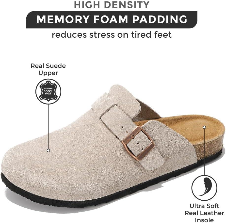 Project Cloud Mens Clogs - 100% Full Grain Genuine Leather Memory Foam Clogs for Men Arch Support Cork Footbed - Non Slip Platform Mules (Brooklyn)(Grey Suede)
