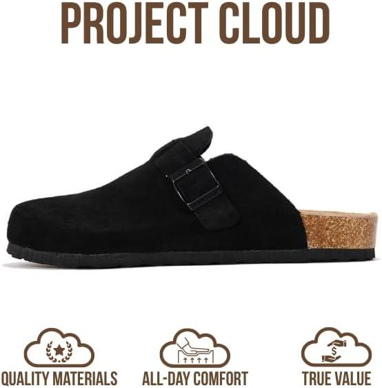 imageProject Cloud Mens Clogs  100 Full Grain Genuine Leather Memory Foam Clogs for Men Arch Support Cork Footbed  Non Slip Platform Mules BrooklynJet Black Suede