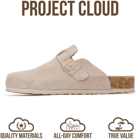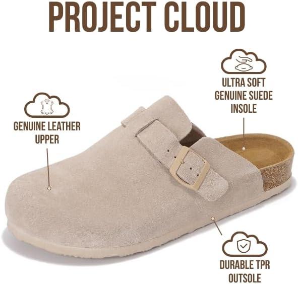 imageProject Cloud Mens Clogs  100 Full Grain Genuine Leather Memory Foam Clogs for Men Arch Support Cork Footbed  Non Slip Platform Mules BrooklynSand Suede